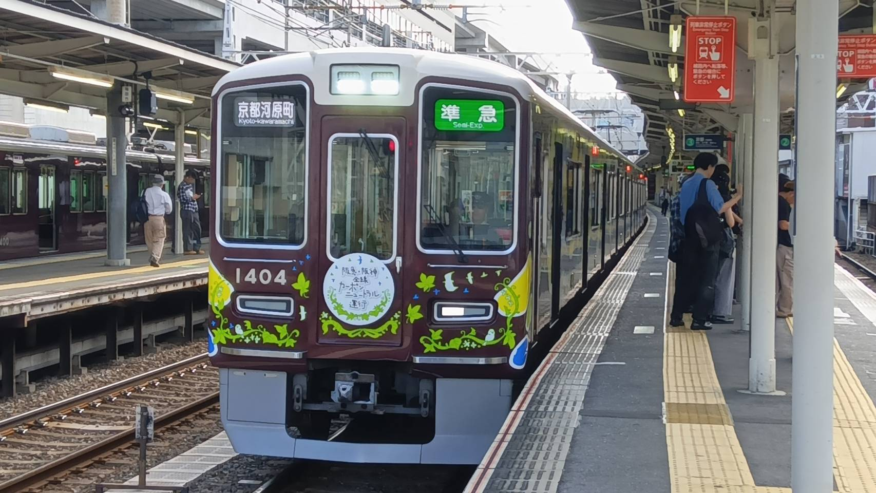 鶴橋駅でいろいろな電車を見た後は、もう一度阪急のラッピングを見るために淡路駅へ移動。乗車電はカーボンニュートラルラッピングでした。
