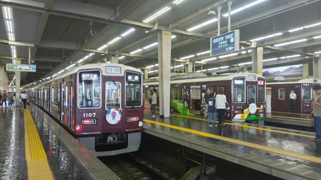 淡路駅はあと数年で高架が完成するとのこと。少し列車観察をして、大阪梅田駅へ再び帰りました。万博ラッピングやSDGsトレインが来るとのことで、それらを撮影するためです。