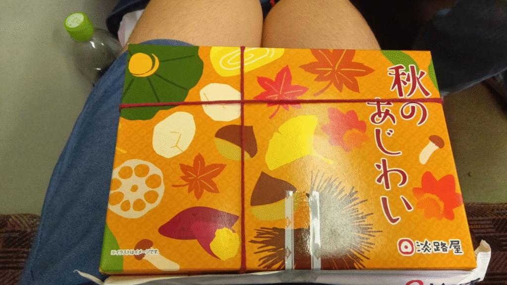駅弁は、淡路屋の、秋のあじわいを購入。いろいろな秋の野菜などが入っていて、とても美味しかったです。