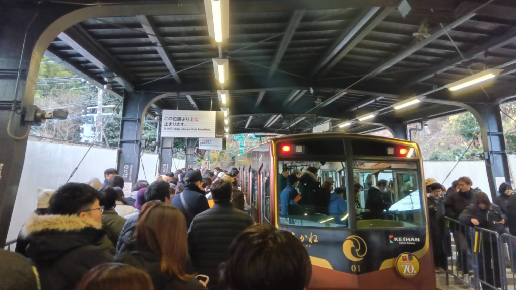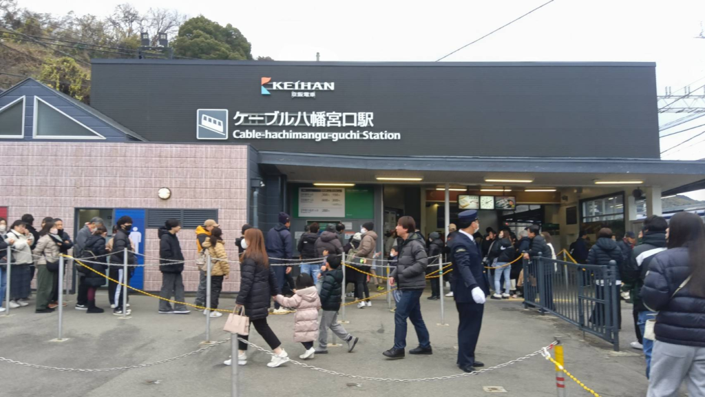 石清水八幡宮駅に着くと、改札を出た瞬間から人だらけ。ケーブルののりばもこの通り。