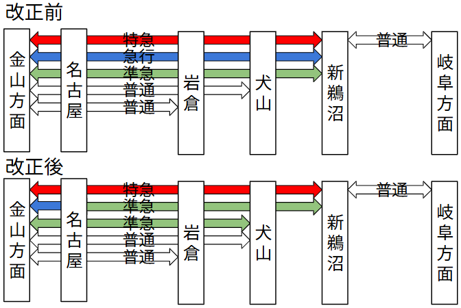 犬山線では日中を中心に減便されます。