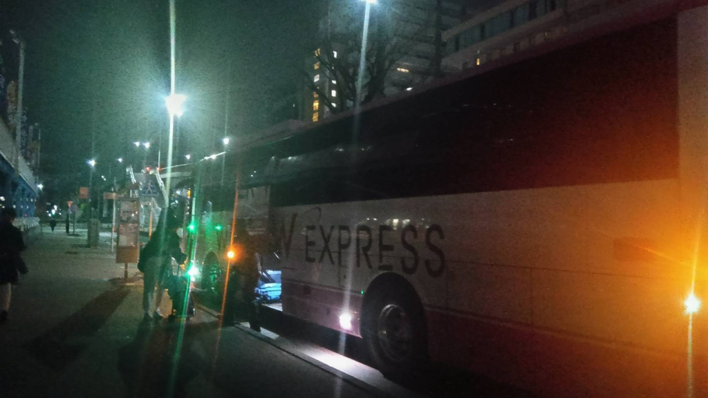 まずは夜の名古屋駅へ。今回の高速バスはWILLAR EXPRESSでした。