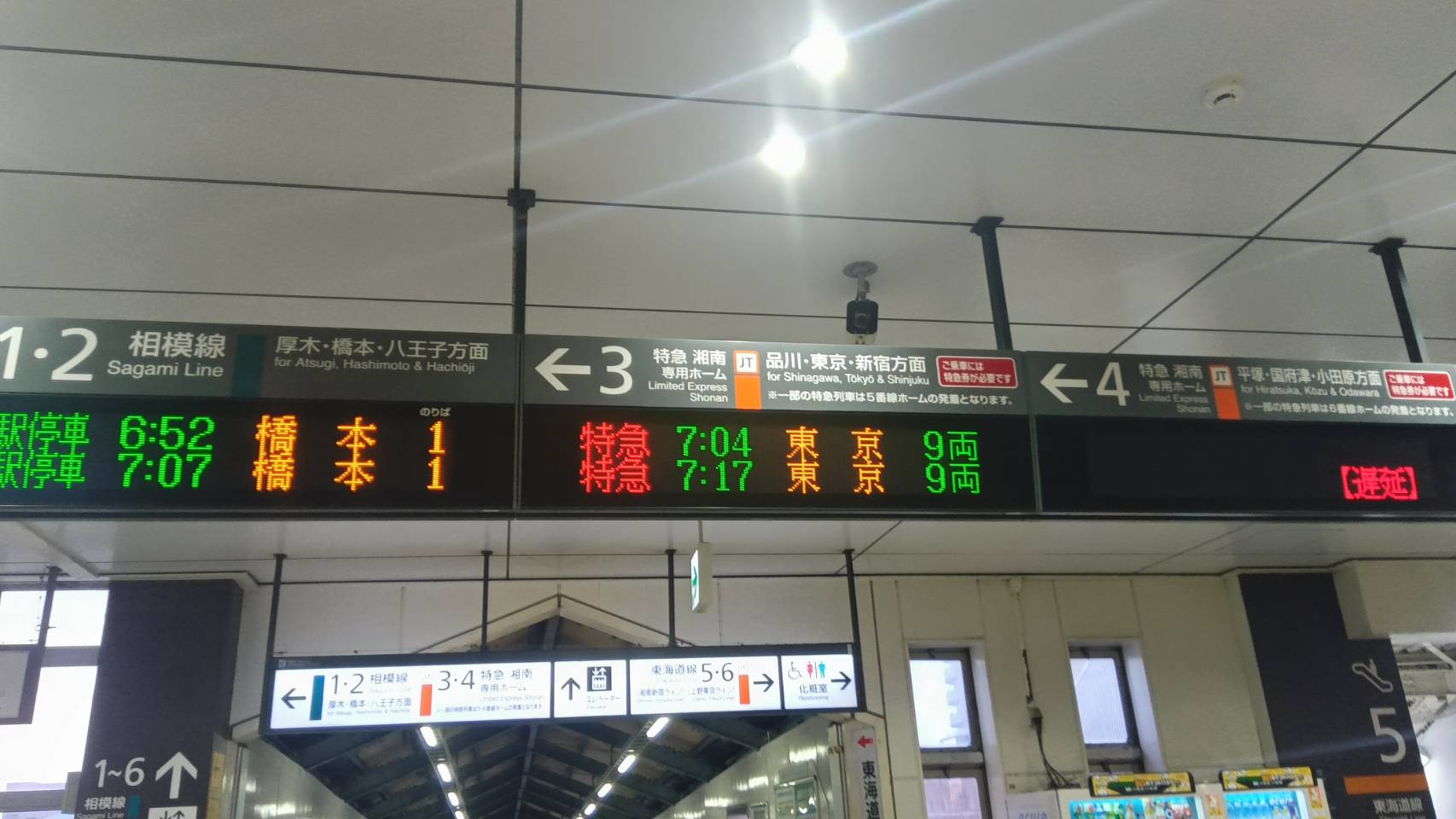 そして茅ヶ崎に到着。ここは5/6番線でサザンオールスターズ「希望の轍」が使われています。