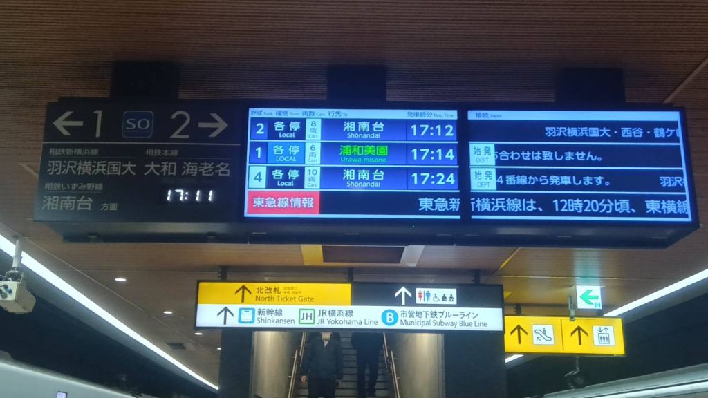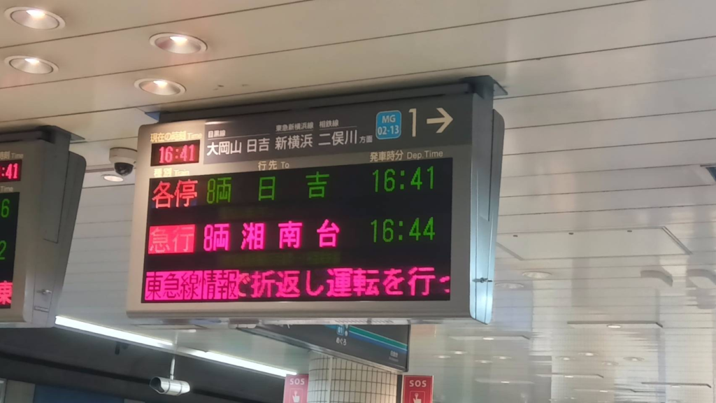目黒線ホームに降りると、なんと急行の行き先が湘南台行きでした!!